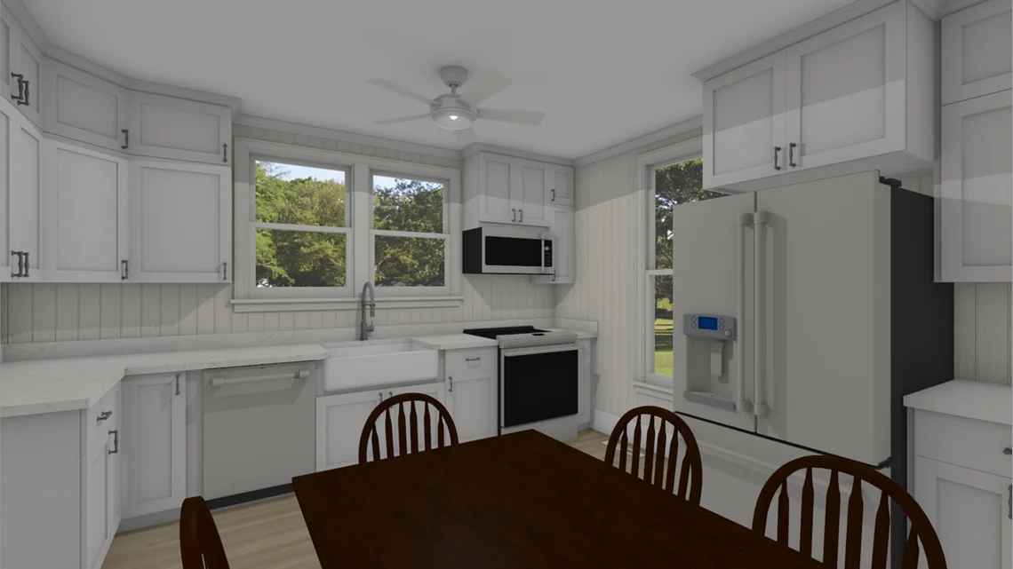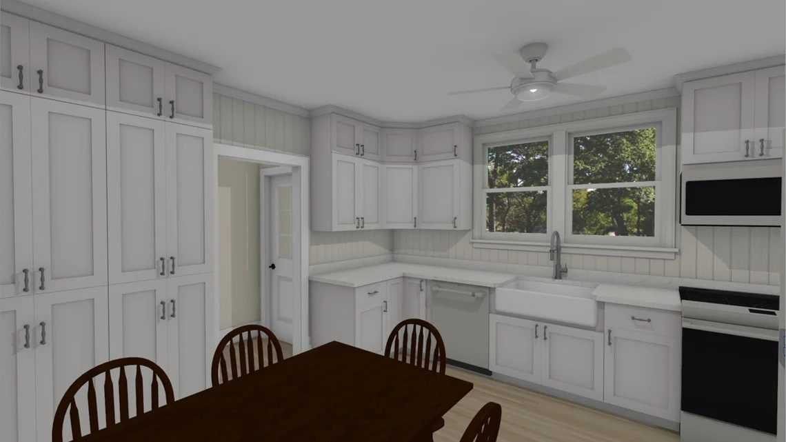These homeowners were starved for storage in this kitchen. The original upper cabinets only went halfway to the ceiling, missing a key opportunity for additional storage! In a small space like this, intentional cabinetry layout is key. Our Design Team strategized and developed a design that solved the problem. By removing a window, extending cabinetry to the ceiling, and adding a whole wall of pantry cabinets, we Maximized Storage Space!