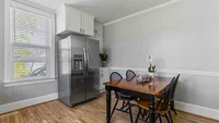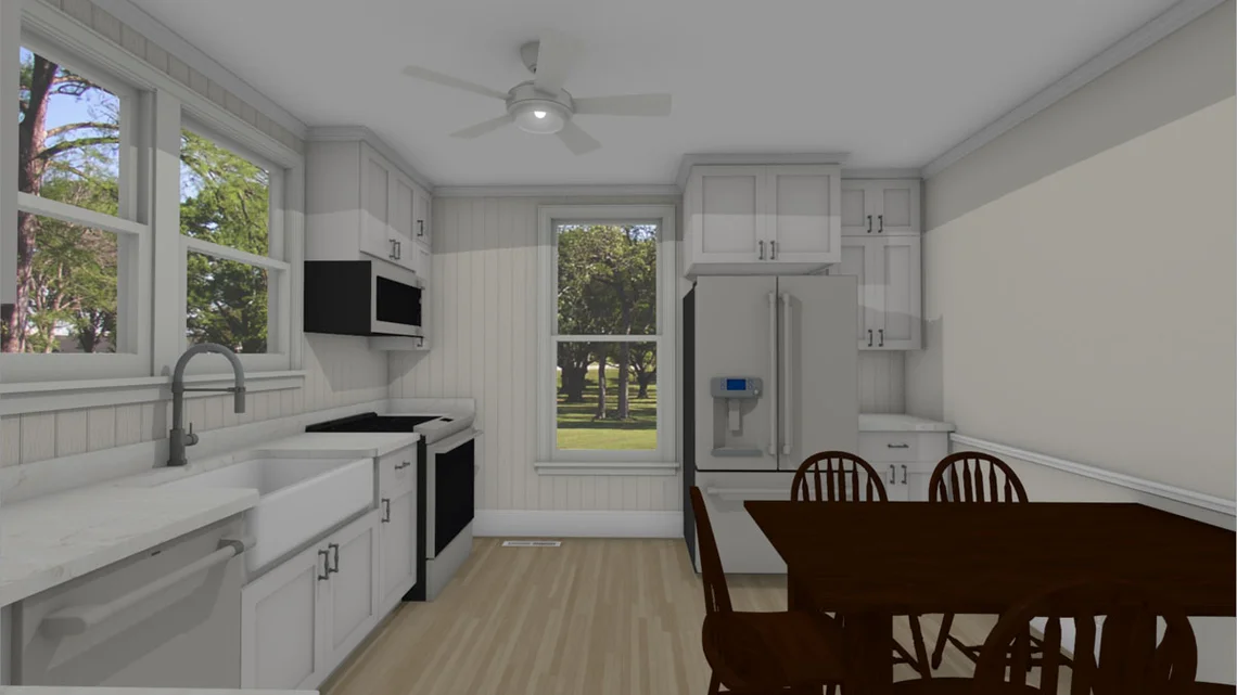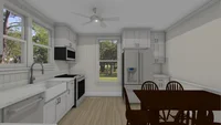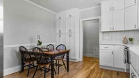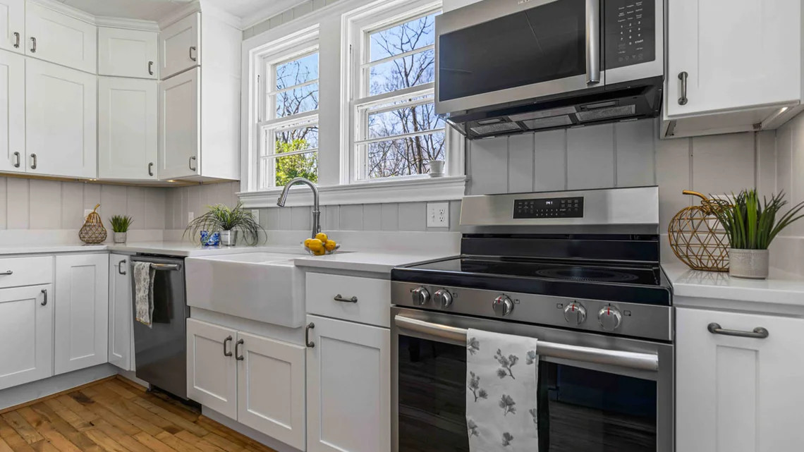 Simple white cabinets, classic finishes, and original hardwoods work together to give a fresh but familiar look that still fits with the rest of the home.